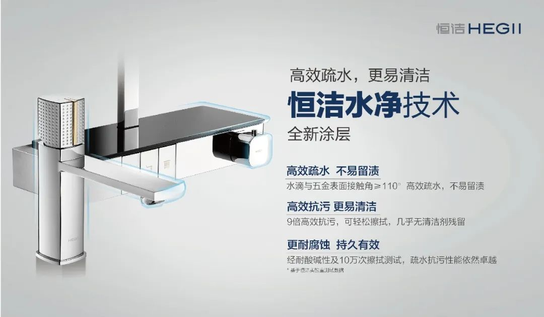 再如,衛(wèi)浴生活中長(zhǎng)期存在的痛點(diǎn)——水垢和污漬。水龍頭、花灑等衛(wèi)浴五金,使用過(guò)后一旦清潔不及時(shí)就容易水漬斑斑,甚至生銹,不僅會(huì)讓衛(wèi)浴五金失去光澤,還容易滋生細(xì)菌。雖然網(wǎng)上針對(duì)水垢的清除,有各種各樣的方法,但大多治標(biāo)不治本。恒潔創(chuàng)新推出的水凈技術(shù),直擊水垢、污漬等痛點(diǎn),從源頭上解決衛(wèi)浴產(chǎn)品的清潔難題。目前,恒潔水凈技術(shù)已經(jīng)應(yīng)用在恒潔坐便器、花灑和水龍頭等多種產(chǎn)品上,以實(shí)用科技助力用戶(hù)升級(jí)品質(zhì)生活。