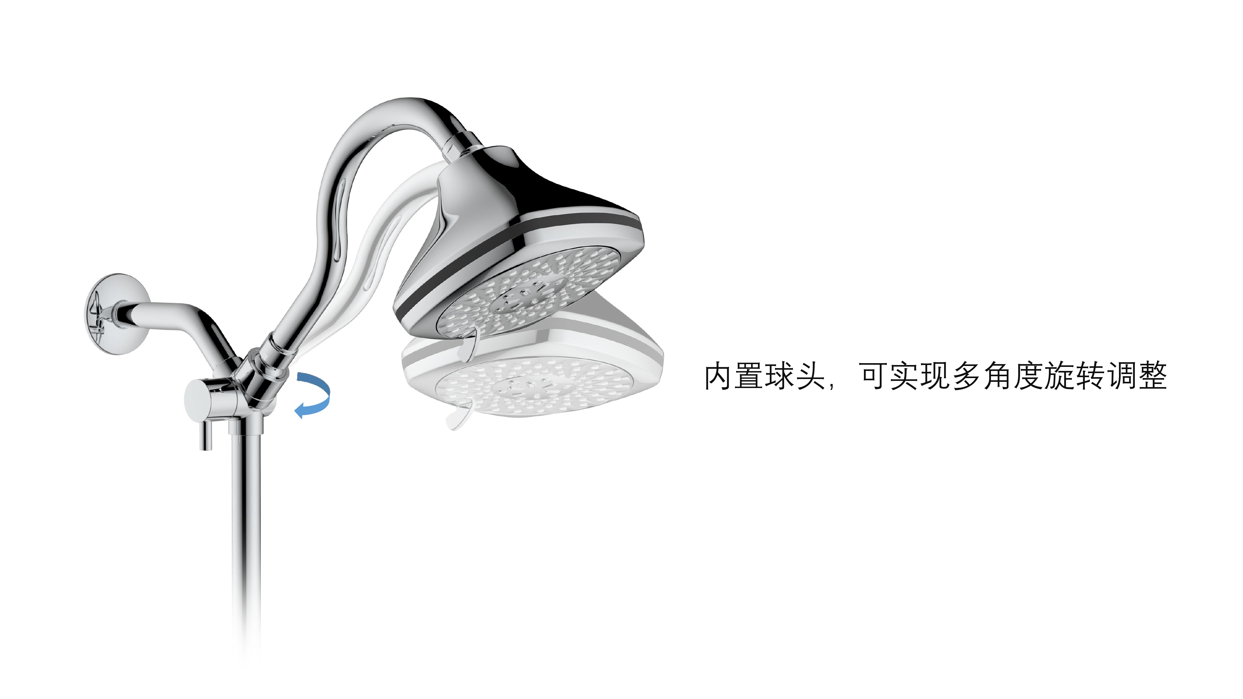 上出水彎管套裝;頂噴內(nèi)置球頭,可實現(xiàn)多角度旋轉(zhuǎn)調(diào)整;把手切換頂噴出水、花灑出水;轉(zhuǎn)動把手調(diào)節(jié)滑座高低;8功能出水花灑