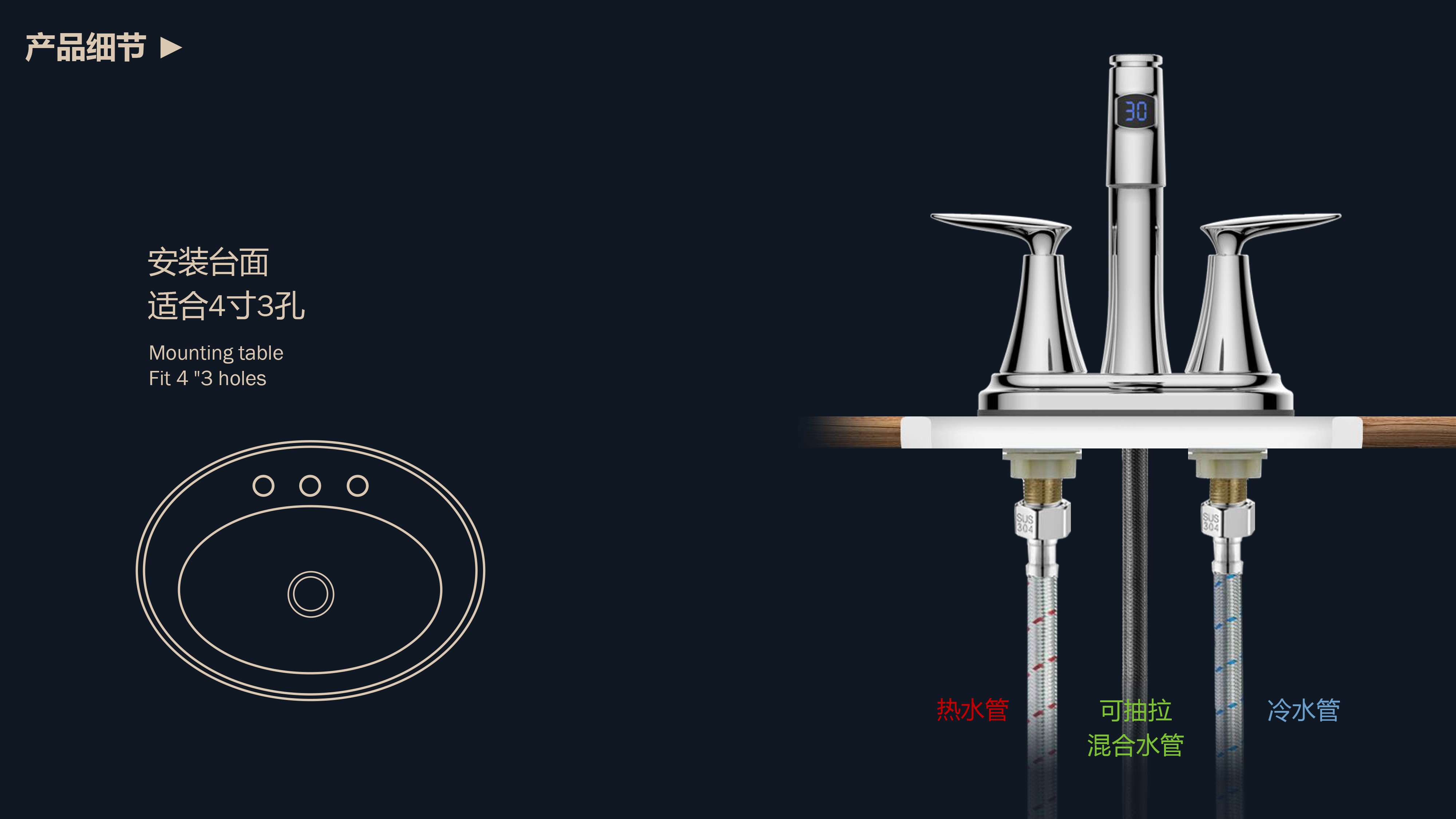 FB4251-D0 溫顯4”雙把面盆抽拉龍頭