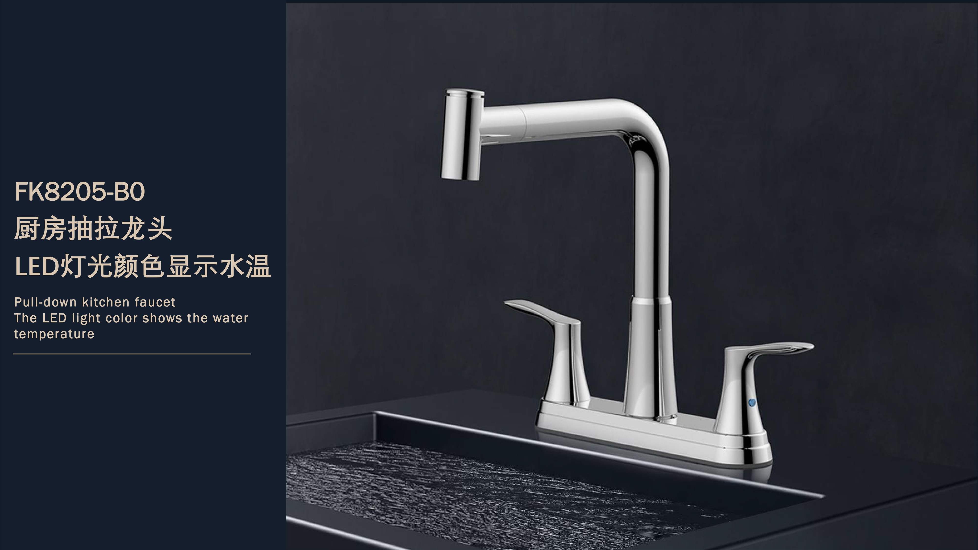 FK8205-B0 8”雙把 LED燈光顏色顯示水溫廚房抽拉龍頭